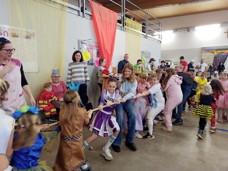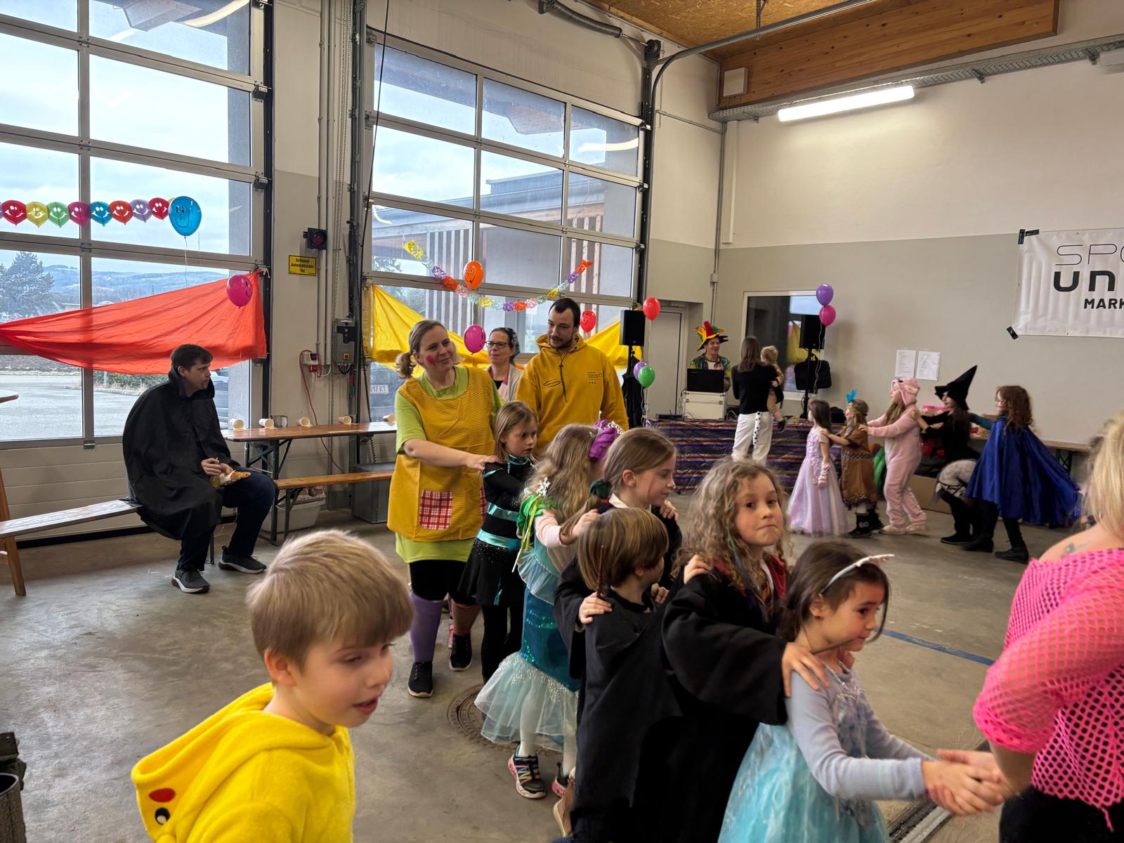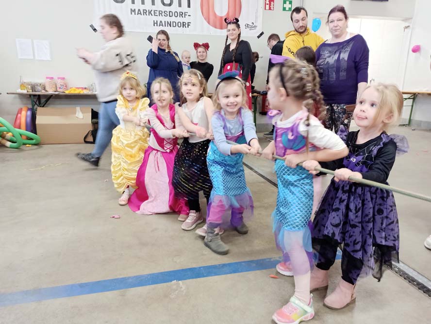 Beim Kindermaskenball am 15. Februar im Haus der Freiwilligen Feuerwehr Markersdorf standen die bunt maskierten Kinder im Mittelpunkt. Babsi, Silvia und Ulla, die Trainerinnen unserer Kinderturneinheiten, unterstützt von DJ Stefan, haben sich etwas einfallen lassen, um eine ausgelassene Feier in Schwung zu bringen.