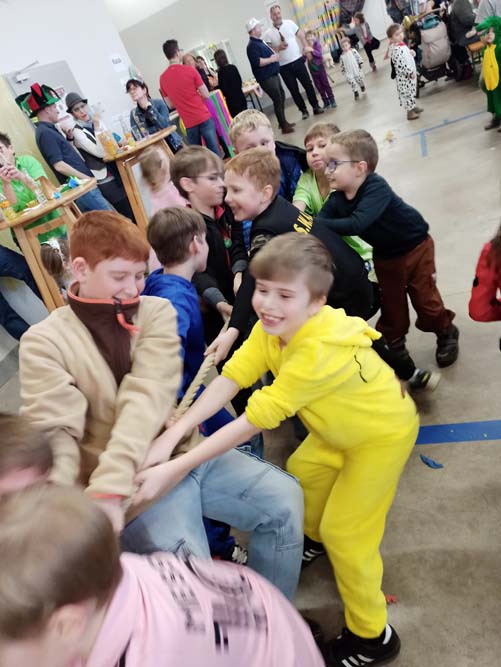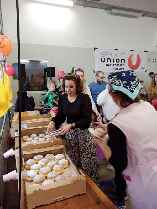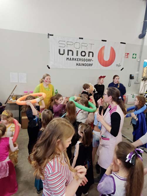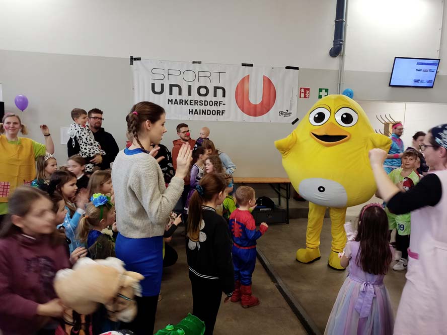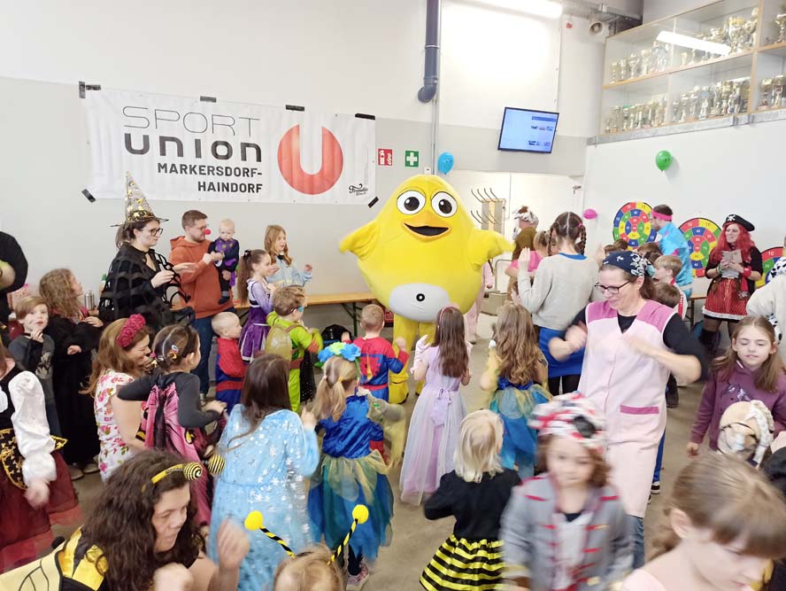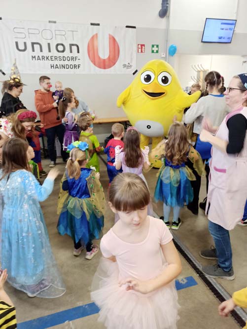 Angefangen von der Polonaise, über die Luftballonschlacht bis hin zum Limbo-Dance war alles dabei. Auch ein Stationenbetrieb mit abwechslungsreichen Aufgaben ließ für Langeweile keinen Platz. Dazu gab es Musik, Tanz, den obligatorischen Auftritt von UGOTSCHI, dem Sportunion-Maskottchen, sowie Gratis-Faschingskrapfen und Schwedenbomben.